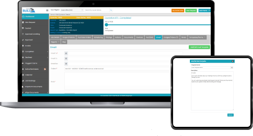 The subject line populates task number and address details and allows the choice of multiple description templates.